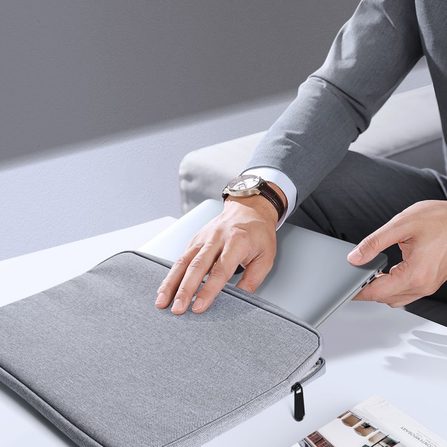 DUX DUCIS Fashion Lightweight 360° Protection Waterproof Fabric Laptop Sleeve Bag for 13-13.9 14-15.4 15.5-16 Inch Macbook Laptops Light Grey