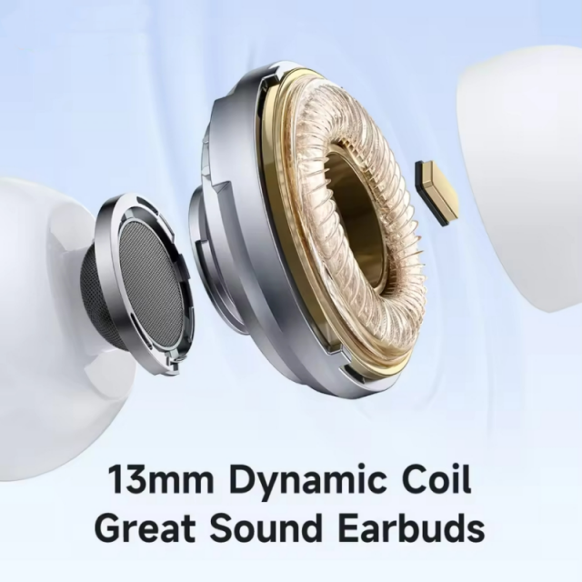 The 13mm diameter high-performance dynamic unit brings strong power and sound penetration. Super standby, total battery life including charging box is 21 hours. The USB-C charging cable charges in 2 hours.